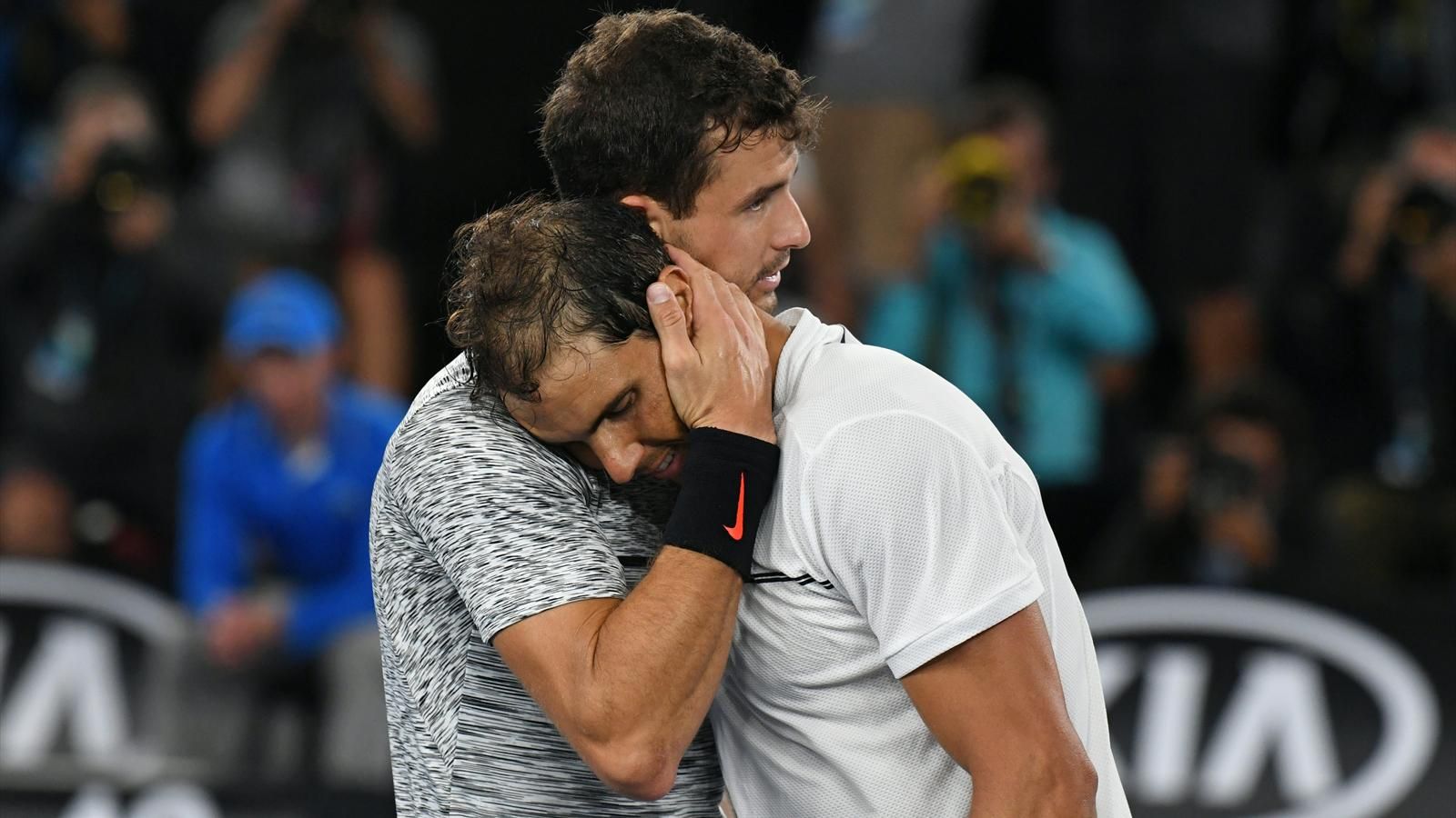 Nadal s’effondre au moment de la balle de match : le combat était rude et a duré presque 5 heures. Il marque toutefois le retour de Rafa à l’avant plan mais aussi le sommet de la carrière de Dimitrov. Le Bulgare est lancé pour sa saison 2017 où il atteindra son meilleur classement et finira par gagner le Master en fin de saison.